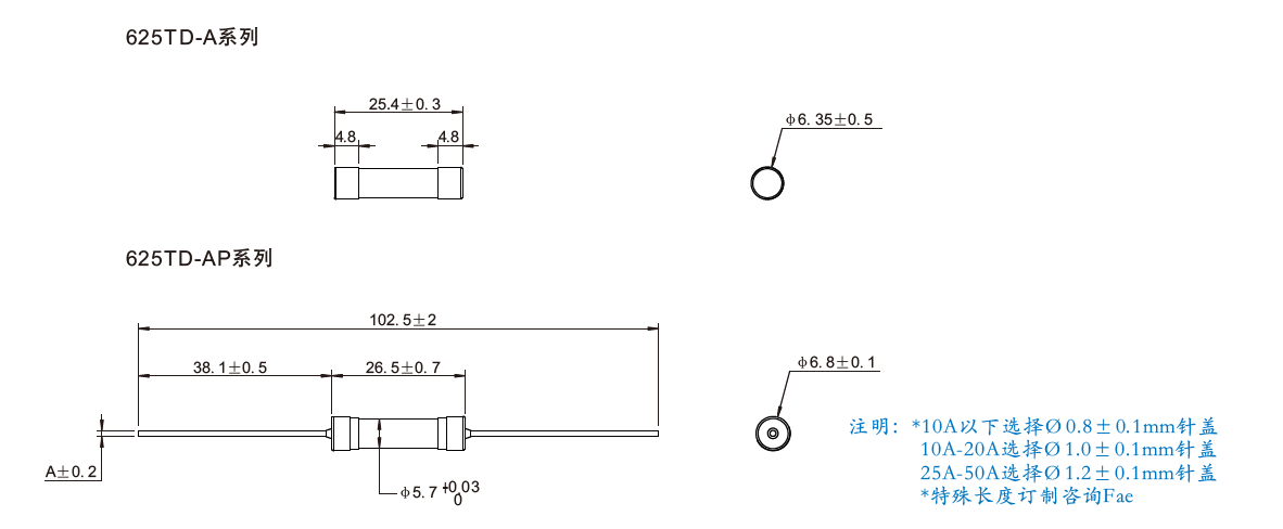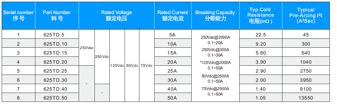 防雷擊 抗浪涌 陶瓷管 大電流熔絲 625TD Series 5A~50A 250Vac/75Vdc